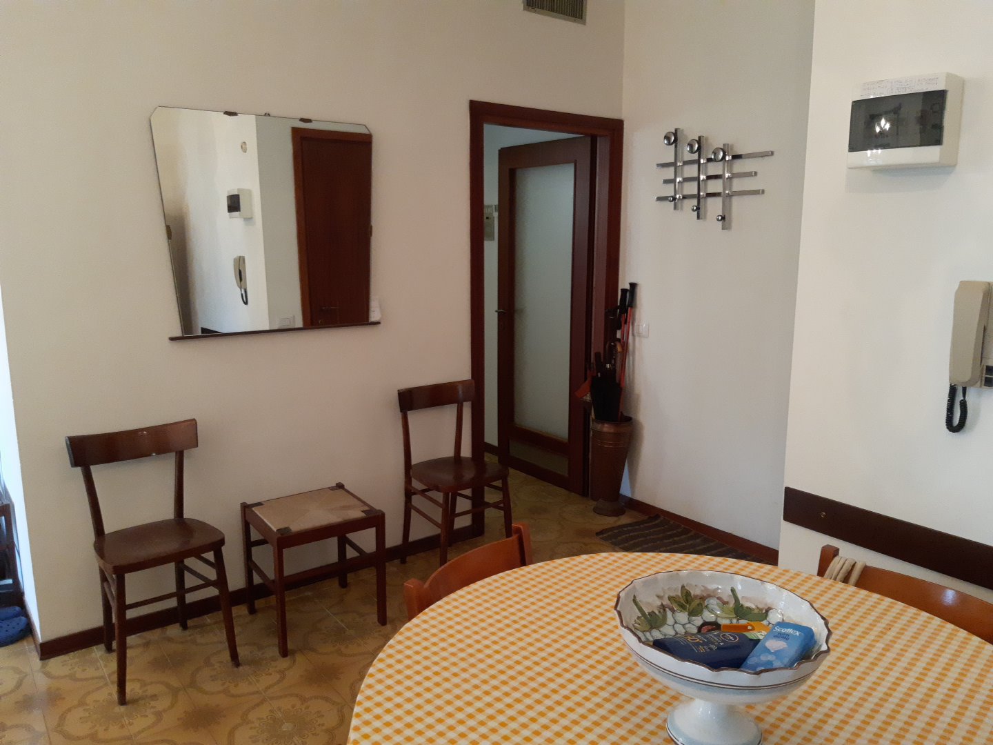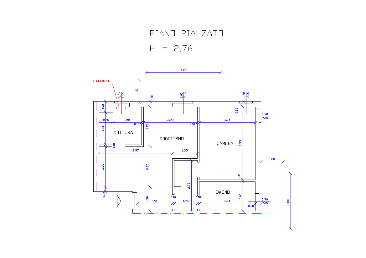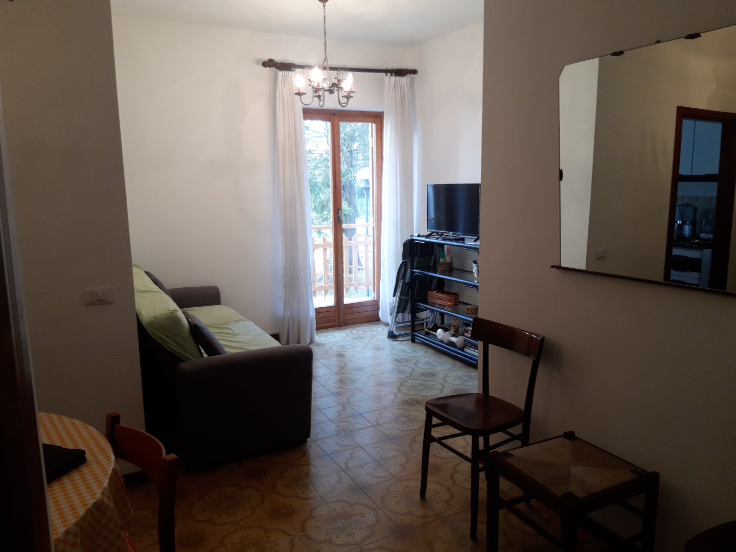L’abitazione è composta da un soggiorno, un cucinotto, il disimpegno, una camera da letto matrimoniale ed il servizio igienico con vasca, oltre a due balconi.