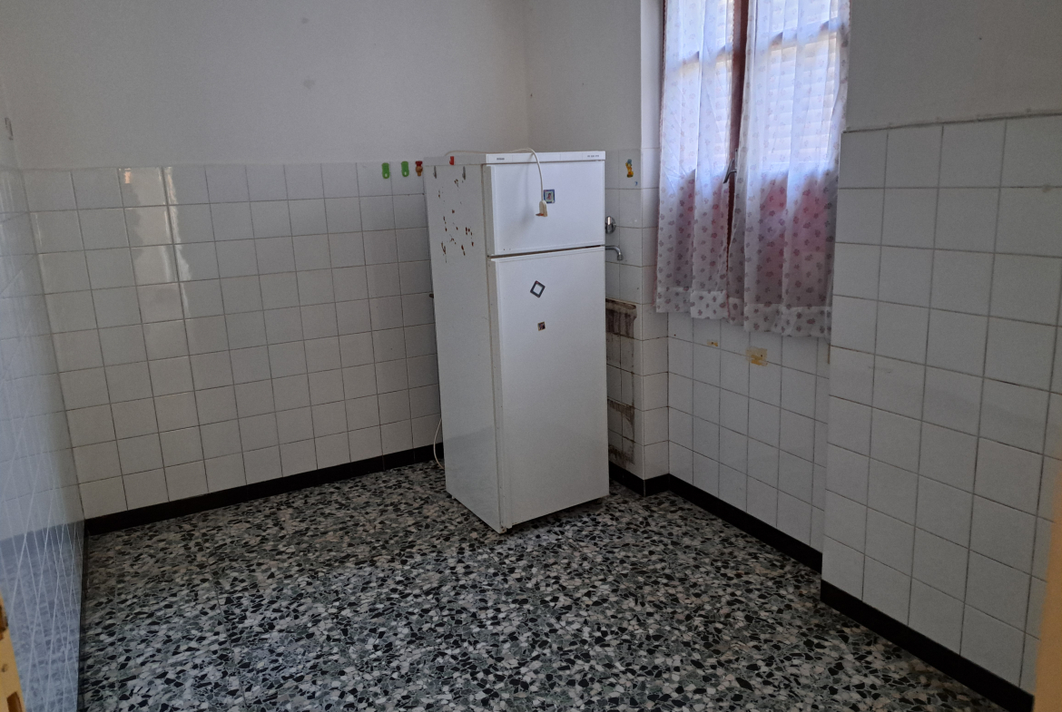 al Piano Terra ingresso comune a tutti i piani e vano scala, entrata all’appartamento, cucina, soggiorno, camera da letto, servizio igienico e piccola corte di proprietà esclusiva;