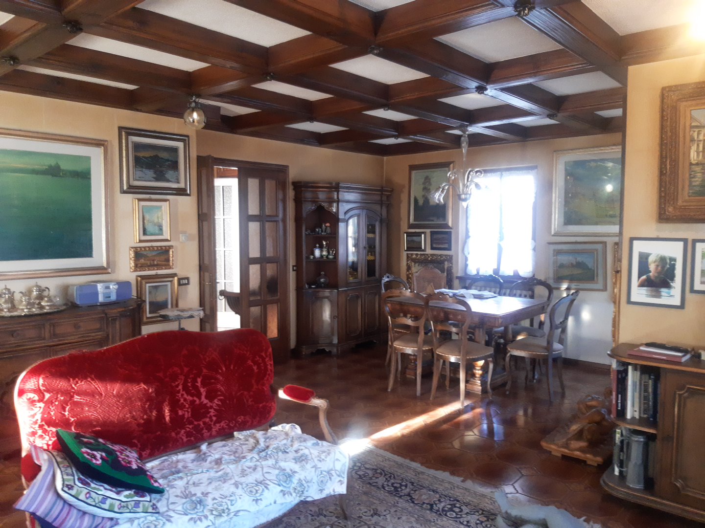 La villa comprende anche un piano seminterrato, dove trova posto lo studio d’arte del proprietario, la lavanderia con servizio igienico, la cantina ed il locale caldaia, ed uscita diretta al giardino. Dalla strada comunale si accede alla grande autorimessa interrata con accesso diretto alla villa.